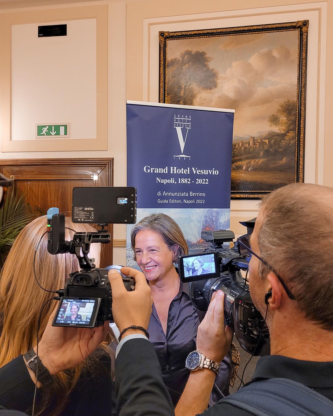 Alla presentazione in Sala Scarlatti hanno partecipato quasi 200 invitati, tra cui ospiti illustri come il sindaco di Napoli Gaetano Manfredi, il presidente dell’unione industriali Costanzo Jannotti Pecci, il già presidente di Confindustria Antonio D’Amato, l’assessore alla sicurezza del comune di Napoli Antonio De Jesu, il direttore di Repubblica Ottavio Ragone e molti altri – tutti letteralmente commossi dalla storia del Grand Hotel Vesuvio e dalla lettura della tanto amata città di Napoli che ne hanno dato l’autrice e Maurizio de Giovanni, che ha definito il libro della Berrino “un vero e proprio romanzo […] da leggere due volte, la prima concentrandosi sui testi, la seconda perdendosi nelle immagini”.