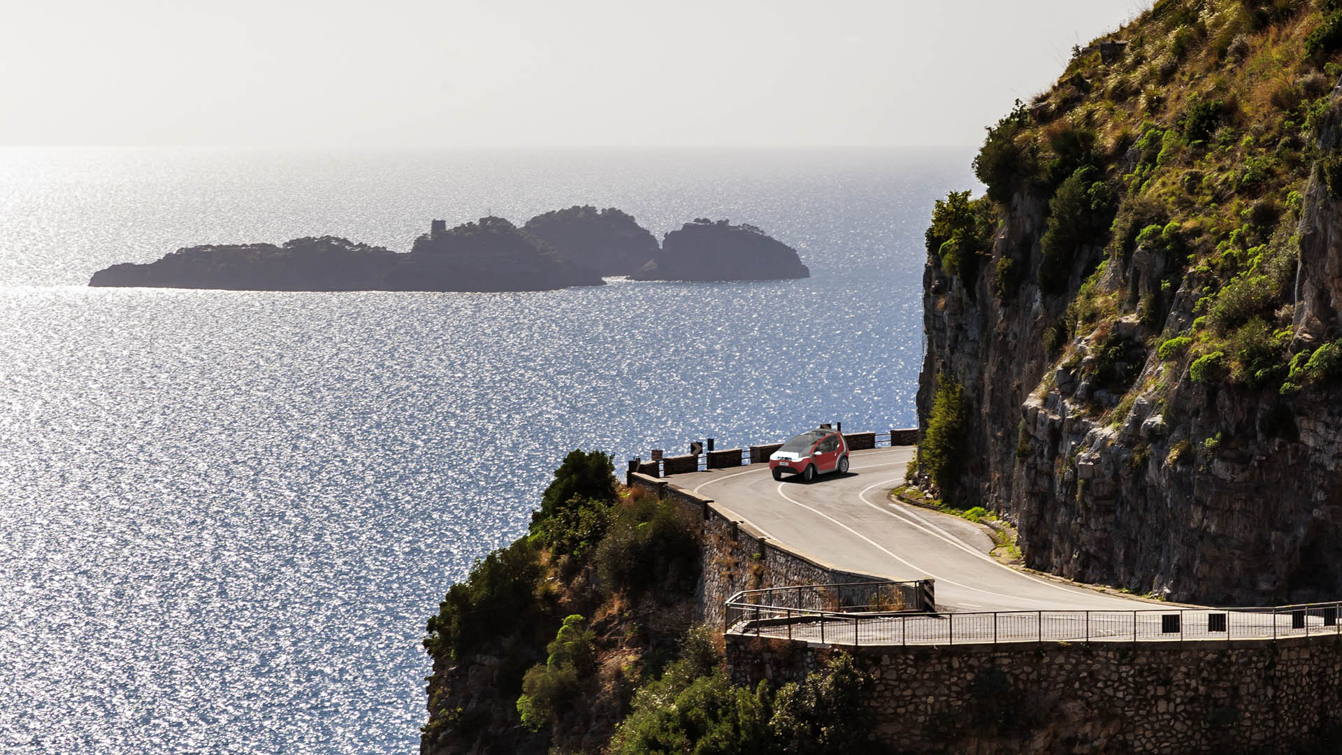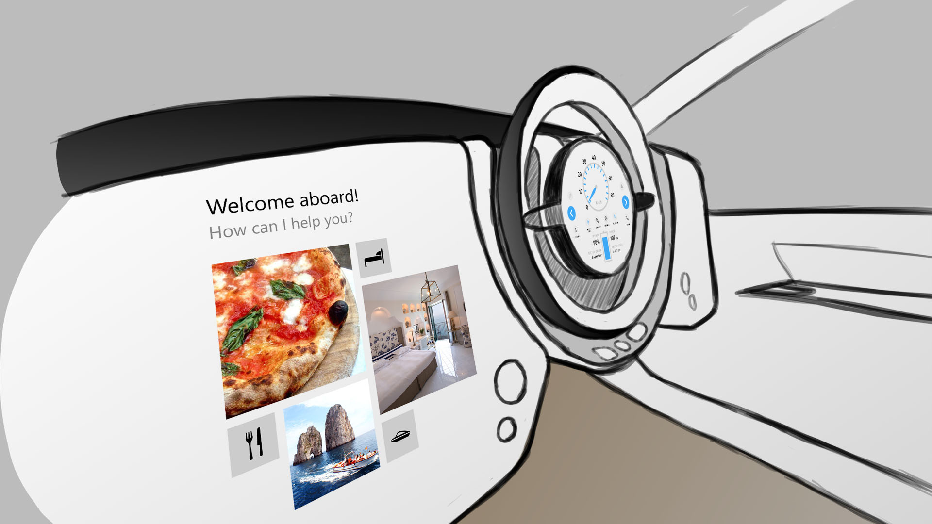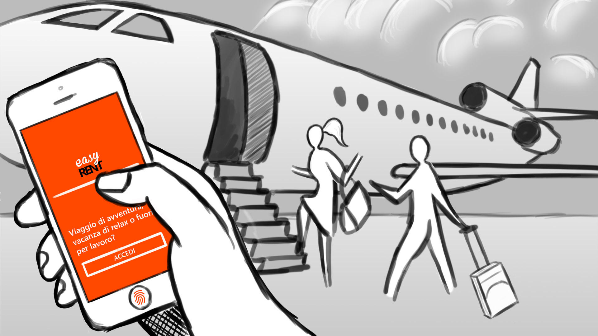 Dopo un intenso periodo di lavoro si sogna una breve pausa per ritrovare il proprio equilibrio. Una meta può essere la Costiera Amalfitana, un sito Unesco che coniuga natura e cultura. Si decide e si parte in aereo, destinazione Napoli. Prima di decollare, lei ricorda a lui di prenotare l’auto; lui, in un paio di minuti, grazie all’app dedicata, prenota una FIAT easy tre-porte. La vettura, dotata di guida autonoma, aspetterà la coppia all’uscita del terminal degli arrivi. L’apertura della portiera avviene previa scansione dell’impronta digitale, trasferita dallo smartphone alla vettura in fase di prenotazione. Appena entrati nella FIAT easy, gli ampi monitor multi-touch del cruscotto suggeriscono l’hotel dove pernottare e i ristoranti per la serata, con tanto di recensioni di altri utenti e possibilità di prenotare direttamente dalla vettura. Il giorno seguente c’è lui alla guida, mentre lei prende informazioni sull’escursione che li attrae, Paestum, tramite il display della FIAT easy. Qualche foto ai templi millenari, una visita al museo, un brunch con mozzarella di bufala, un po’ di aria di mare e si riparte, ma al ritorno guida il pilota automatico di FIAT easy, concedendo un po’ di relax anche a lui. Alla sera, prima di rientrare in albergo, con i sedili totalmente abbassati ci si può abbandonare all’immensità del cielo stellato attraverso il tetto trasparente.