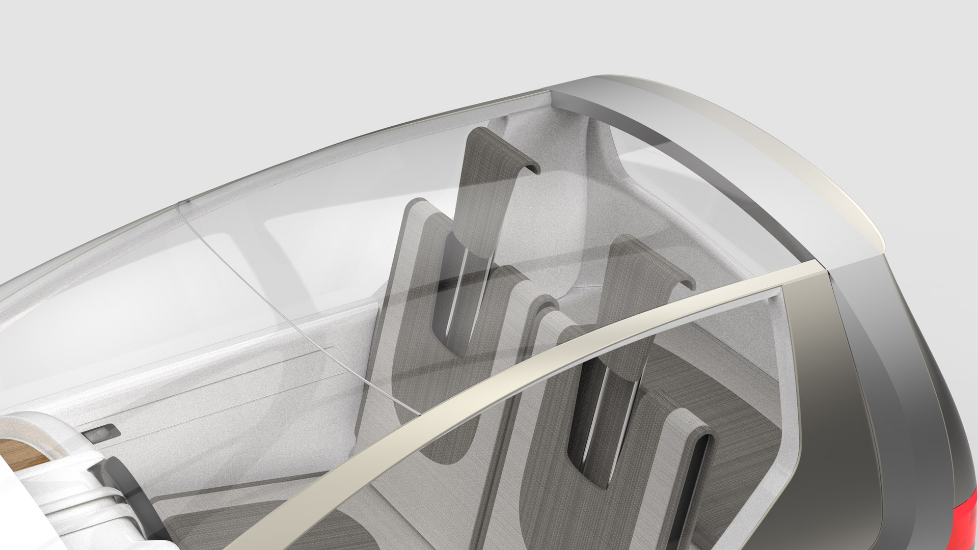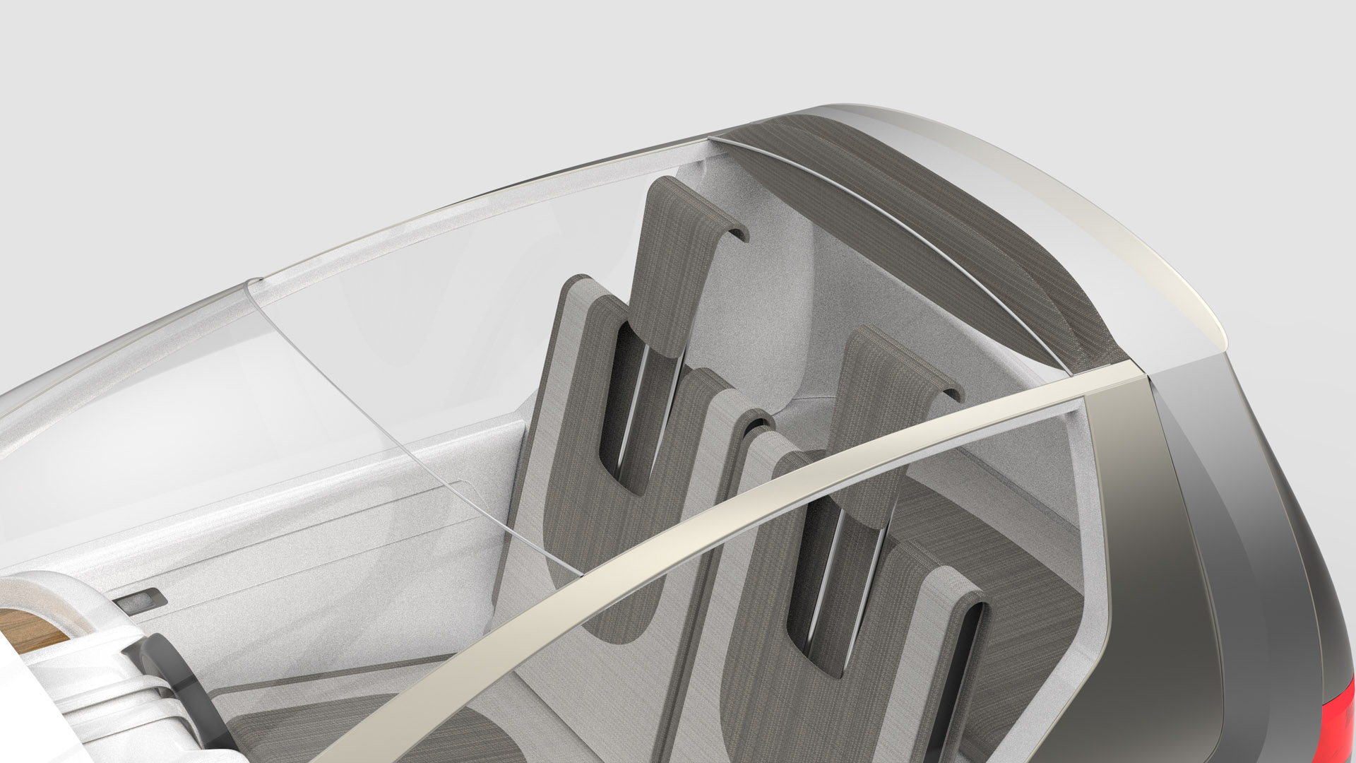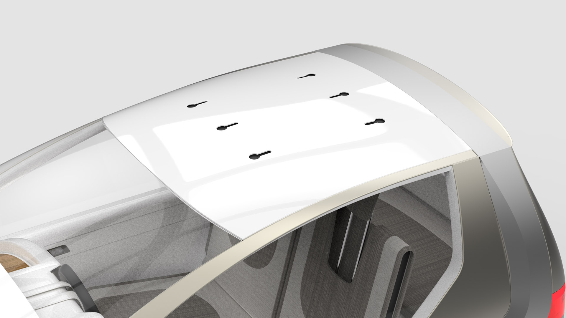 Nella parte superiore, i due moduli laterali hanno ciascuno un capiente vano portaoggetti, dove poter stipare una borsa, lo smartphone, il tablet o qualsiasi altro accessorio da tenere sempre a portata di mano. Tale spazio è sempre accessibile, a prescindere dalla posizione dei moduli. Le facce rivolte verso i passeggeri integrano un display a colori multi-touch curvo derivato dagli e-book reader. In base alle scelte dei passeggeri, i due ampi schermi possono mostrare comandi di guida supplementari, indicazioni stradali, turistiche o funzioni multimediali e di intrattenimento, a seconda dello scenario di utilizzo della vettura.