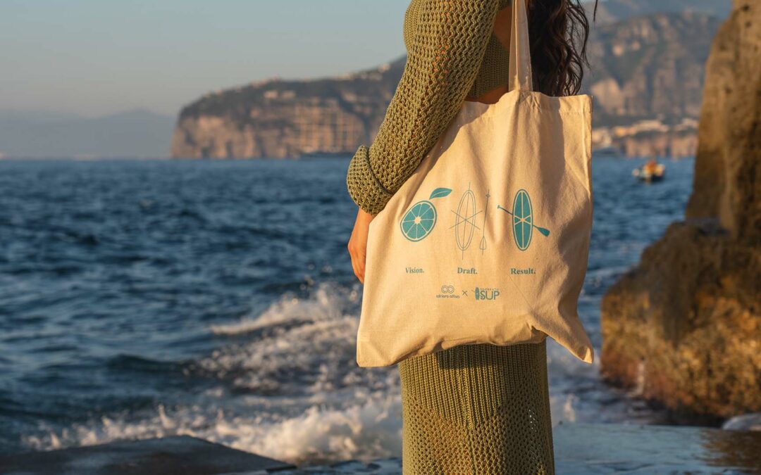 Tote bag X Sorrento SUP copyright © Adriano AlfaroSorrento, 2024Grafica per tote bag in edizione limitata di 100 pezzi per gli amici. “Vision. Draft. Result.”: queste sono le tre macro-fasi del processo creativo che raccontano lo sviluppo del pittogramma di Sorrento...