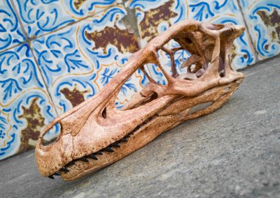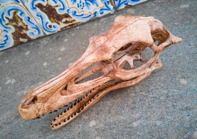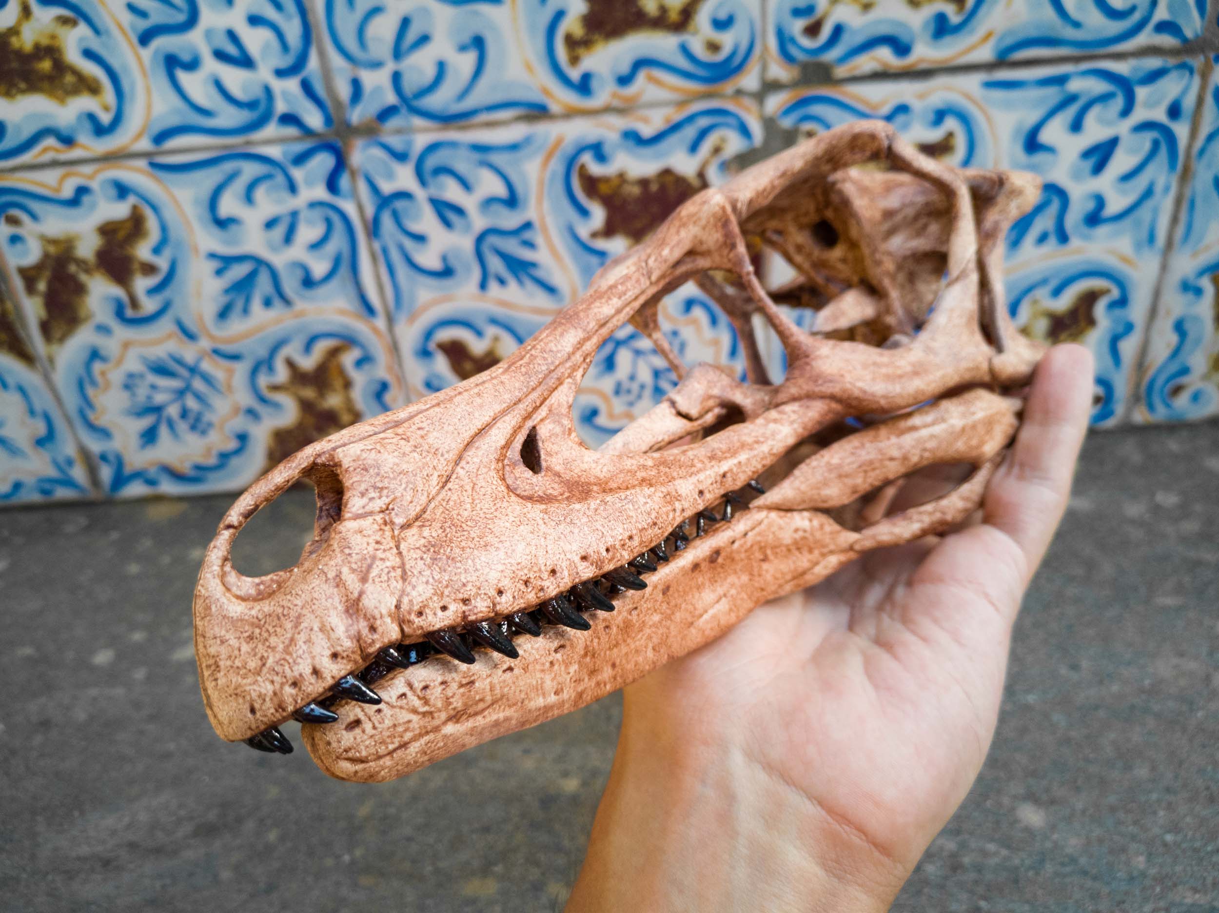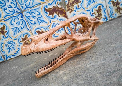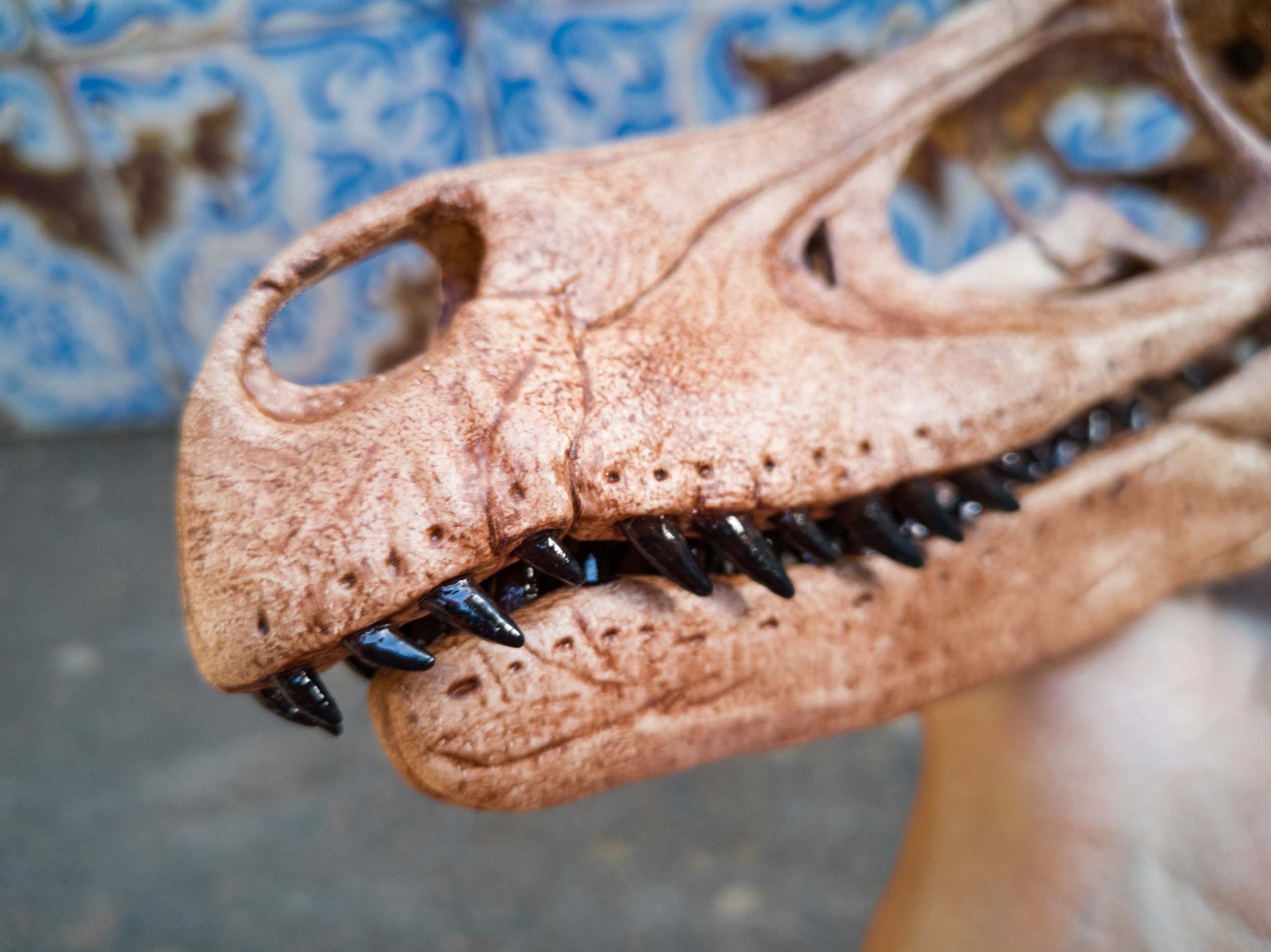 Portare a termine un progetto del genere comporta ricerche e studi a vari livelli; il più banale è come dipingere la riproduzione del teschio fossile. Grazie a Internet è facile reperire fotografie di veri scheletri di Velociraptor da usare come riferimento per le tonalità cromatiche dei denti o di altri dettagli. E poi una cosa tira l’altra, s’inizia a ricercare uno specifico argomento e si finisce per scoprire tante altre cose nuove, allungando lo sguardo verso nuovi orizzonti.