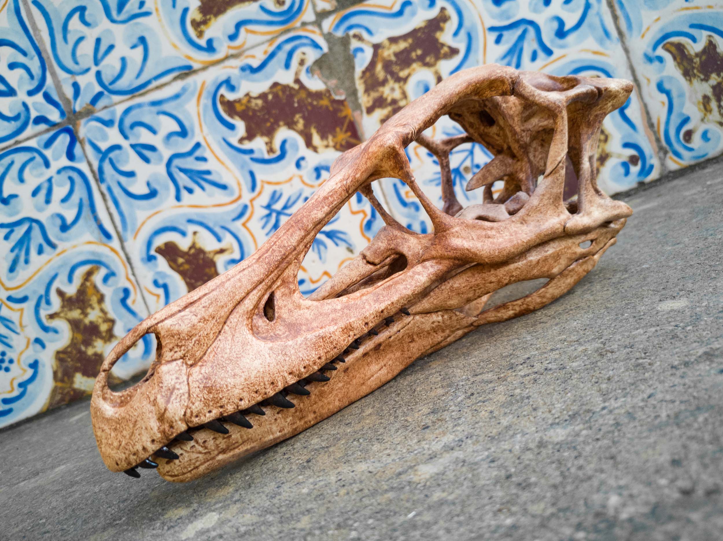 Il video in alto è stato montato e pubblicato per dimostrare le potenzialità di una nuova stampante 3D che mi hanno chiesto di testare come product designer e blogger. Protagonista della clip è un teschio di Velociraptor mongoliensis stampato 3D in PLA e poi dipinto con varie tecniche fino a risultare incredibilmente realistico, proprio come un vero fossile di dinosauro. Il modello 3D è stato condiviso su Thingiverse dall’artista Inhuman_Species, che l’ha pazientemente scolpito basandosi su fotografie e disegni paleontologici di veri crani di Velociraptor.